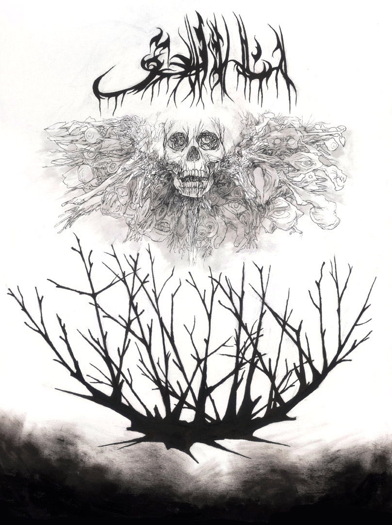 ‘Deathcrust Zikr’, pen and ink on paper, 70 x 120 cm.