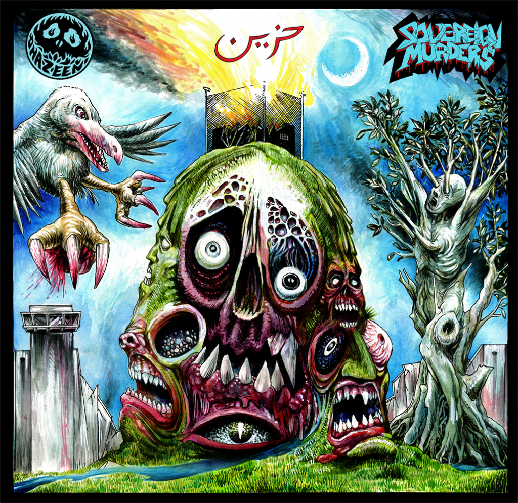 We recorded the album with Michael Imielski at Shhh studio in Granville in late 2020 with our good friends Kian Dayani (bass), Kazem Kazemi (lead guitar) and Susie Hurley (vocals) appearing as guest musicians. Sovereign Murders was released as part of a larger artwork, called Border Farce, which was shown in the documenta fifteen exhibition in Kassel Germany (18 June – 25 September). Below is my painting for the album cover.