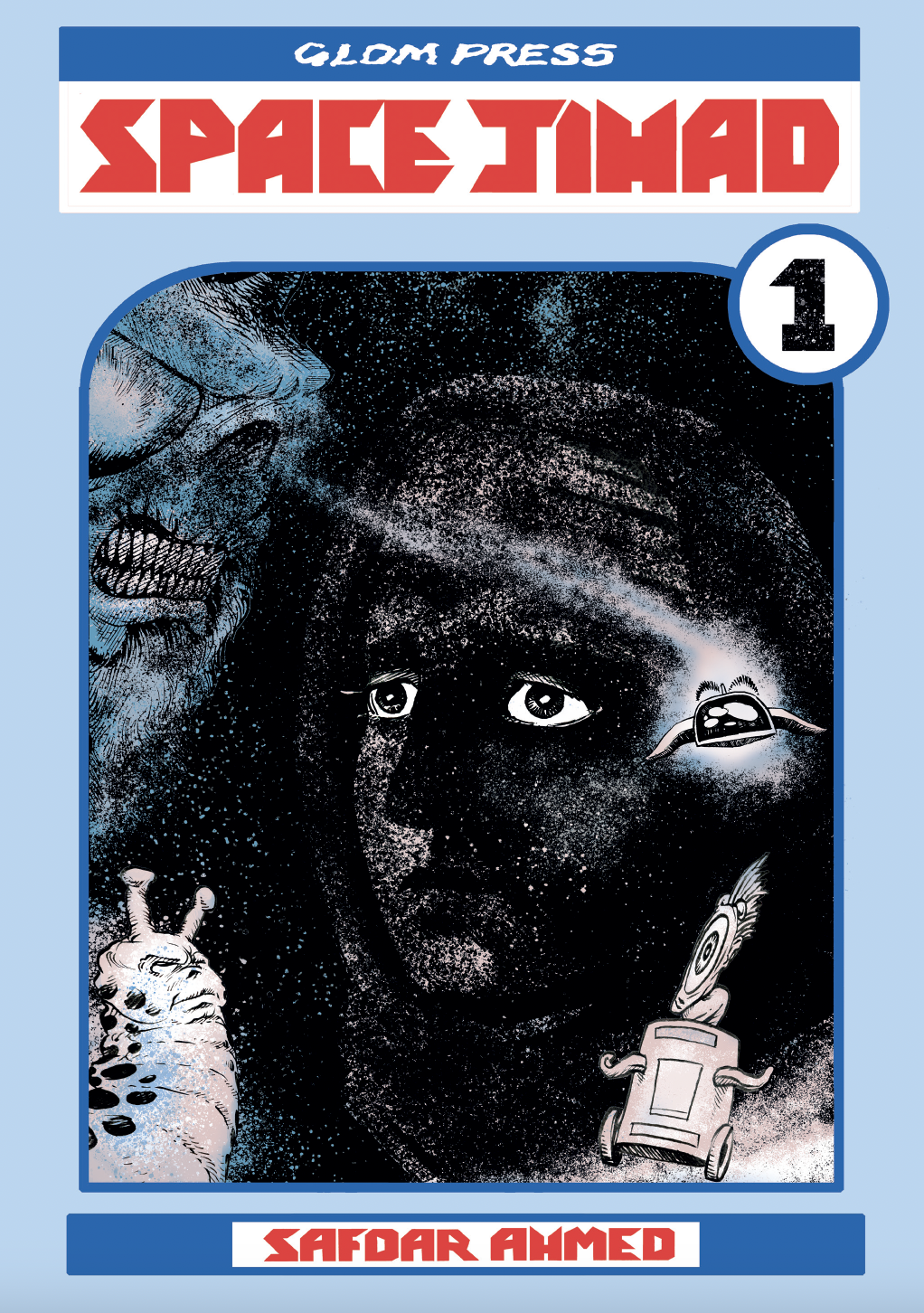 Space Jihad is a serialised 6 issue comic I am publishing with my friends at Glom Press, who make books and comics with gorgeous risograph machines. It follows the adventures of Huda Munawar as she traipses across the galaxy with her best friend, the alien cyborg UNO4. Together they take on morally conservative sandslugs, space vampires, and the might of an empire bent on rampant pan-galactic exploitation.