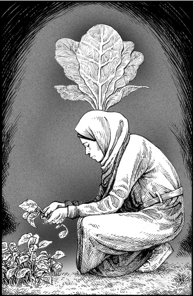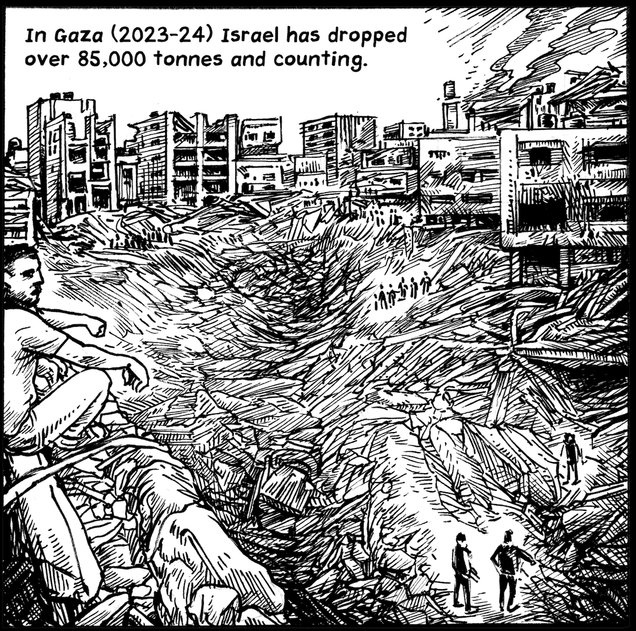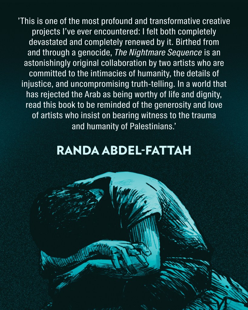 My contributions represent a visual response to the unfolding horrors of Israel’s genocide. Certain images were based on pictures curated from online news feeds and social media sources, uneasily reflecting my status as a far-flung observer — a migrant and settler on the traditional lands of the Guringai people in Sydney, Australia. I pay my deepest respects to the traditional owners of the land on which these images were drawn, acknowledging that sovereignty was never ceded. I hope this book contributes to a growing culture or resistance and solidarity with Palestinian people, in their struggle for freedom, dignity, decolonisation and justice.